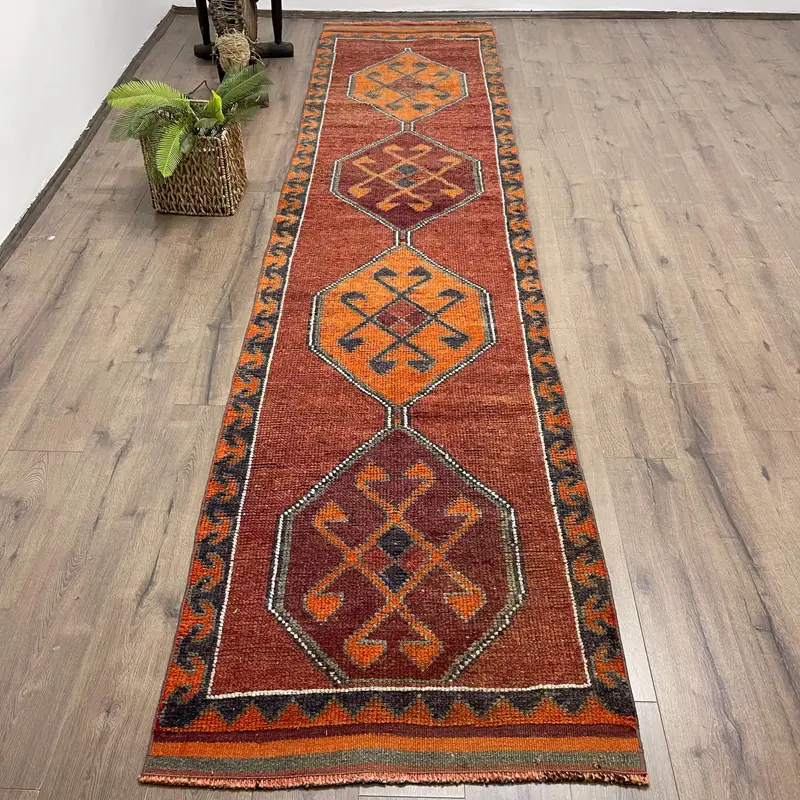 Purple, Orange Floral Rug, 3x13.3 ft Chic Decor