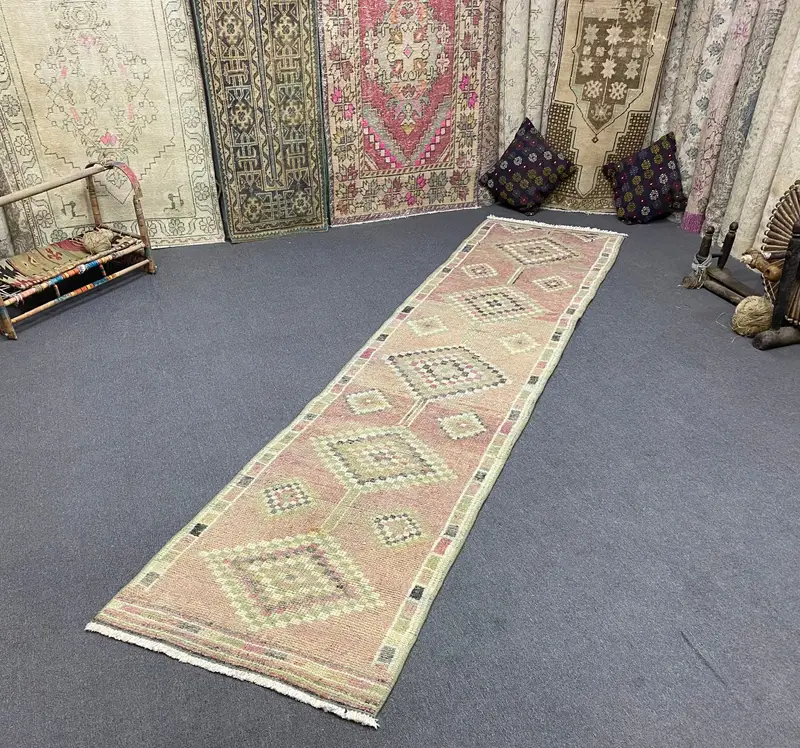 Elegant Pink Rug, 2.5x10.6 ft Floral & Geometric Design