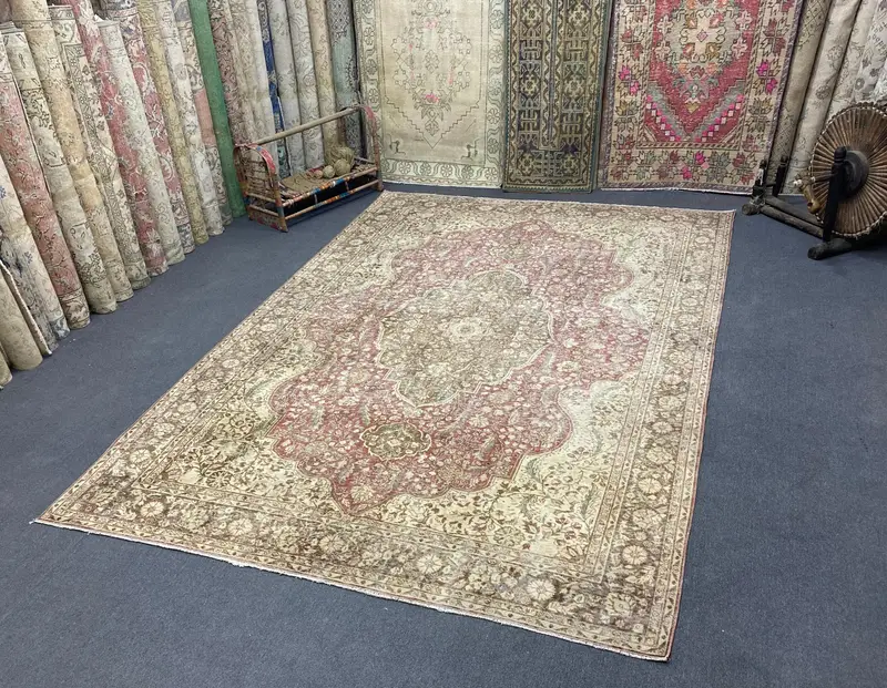Brown & Red Rug, 6.8x10.2 ft Floral & Geometric
