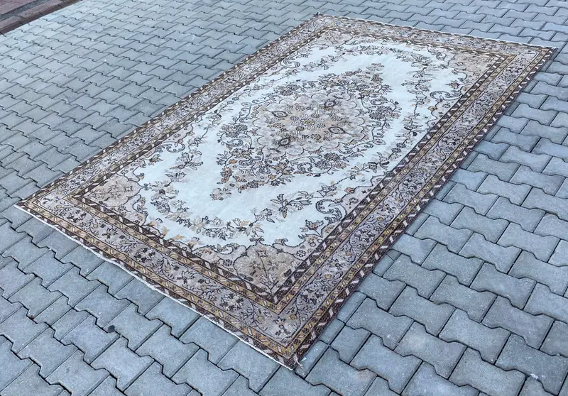 Brown and Beige Rug, 6x9 ft Floral and Geometric Design