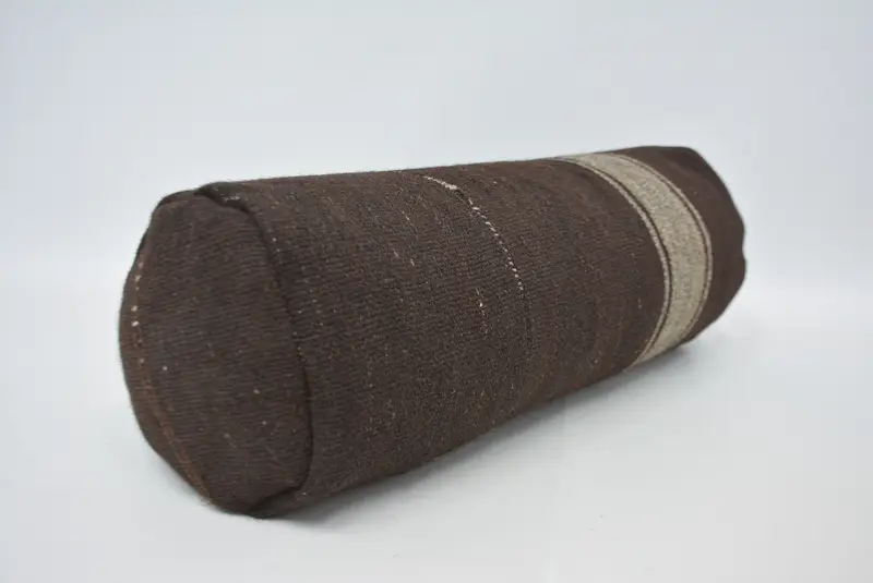 Handmade Striped Bolster Throw Pillow, Embroidered Vintage Cushion