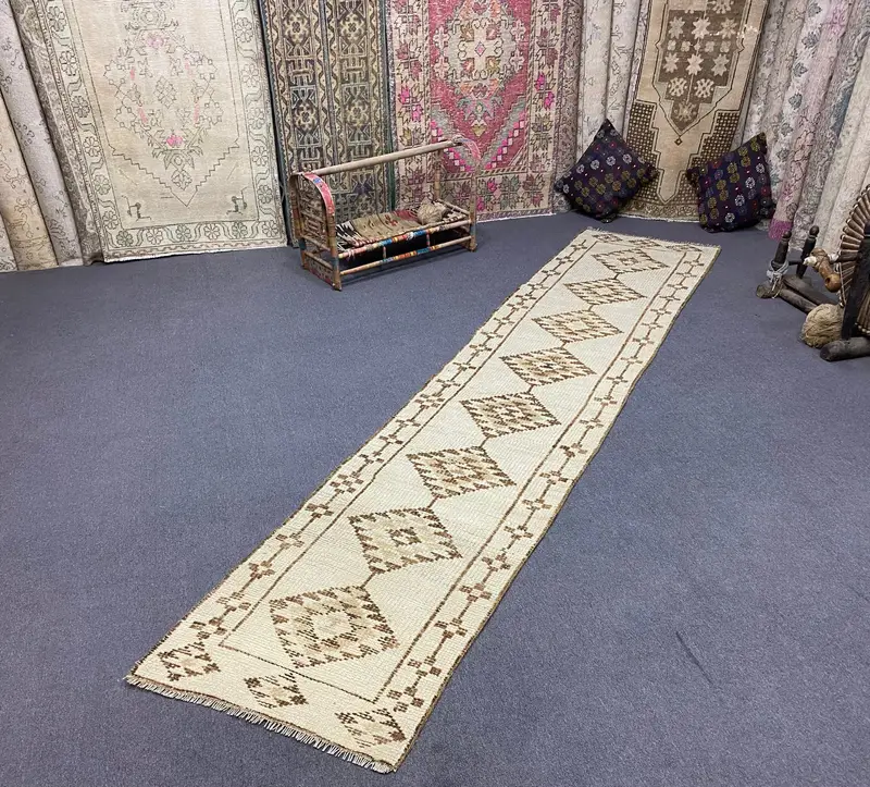 Elegant Beige & Brown Floral Rug, 2.3x11 ft Chic Decor