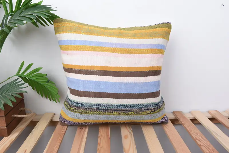 Handmade Striped Throw Pillow, Vintage Brown & Bronze Cushion