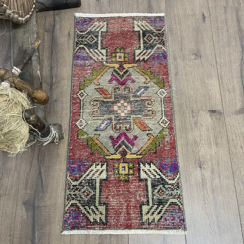 Red Abstract Rug, 1.3x2.8 ft Elegant Decor