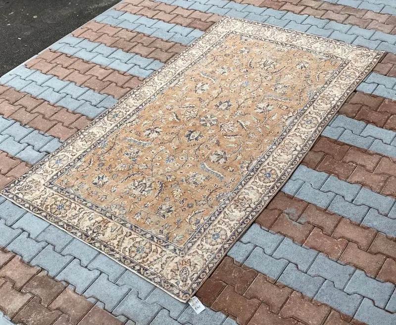 Beige Rainbow Rug, 4,9x8,5 ft Floral Geometric Design