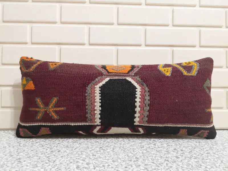 Handmade Wool Throw Pillow with Geometric Pattern, 10x24 Inch Rectangle