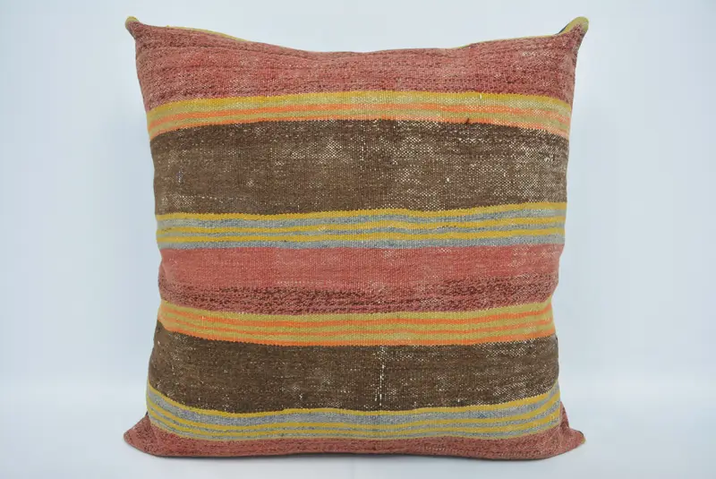 Handmade Striped Throw Pillow, 32x32 Brown & Red Cushion