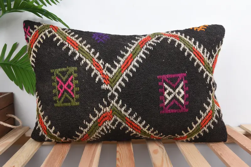 Brown & Orange Southwestern Embroidered Pillow, Handmade Vintage Throw Pillow