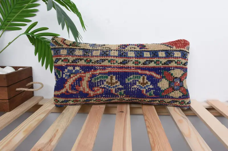 Blue & Red Southwestern Embroidered Throw Pillow, Vintage Handmade Pillow