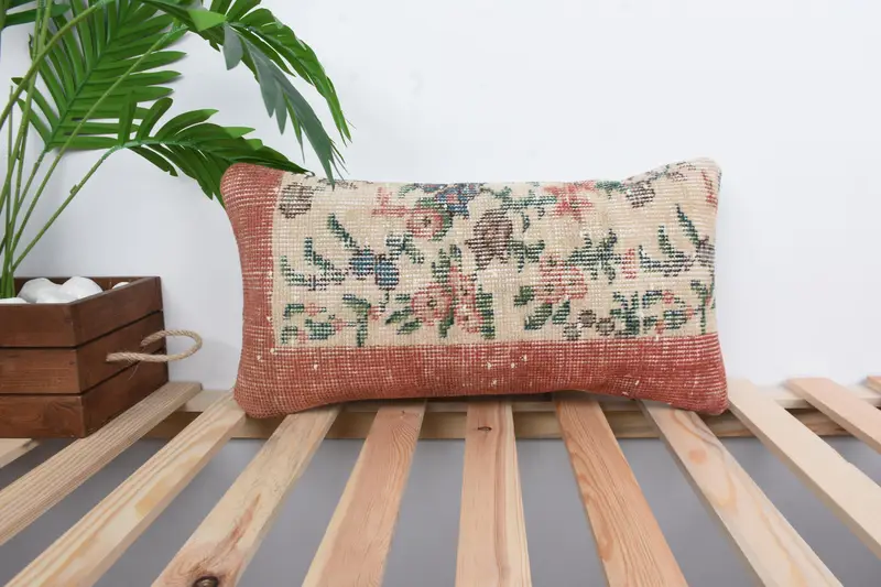 Red & Bronze Floral Throw Pillow, 10x20 Handmade Cushion
