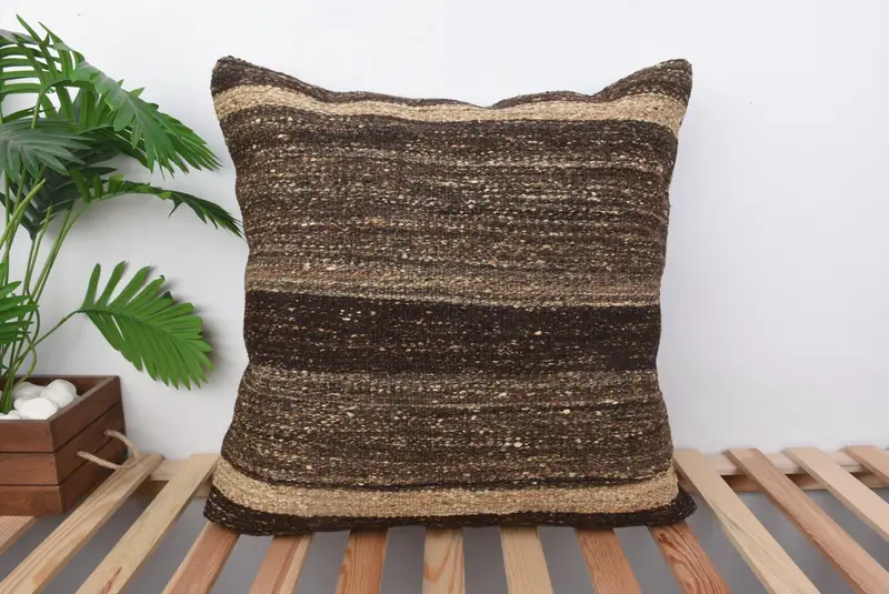 Brown & Beige Striped Throw Pillow, 24x24 Embroidered Cushion