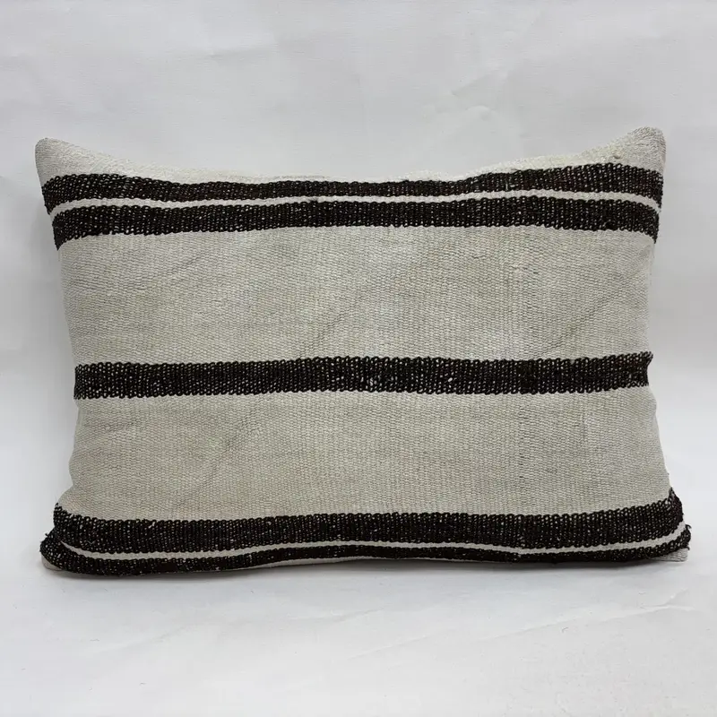 Beige & Brown Striped Throw Pillow, Eco-Friendly Handmade Pillow