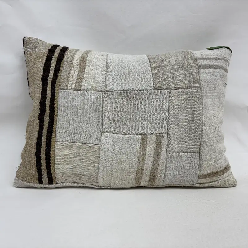 Beige & Brown Patchwork Throw Pillow, 20x28 Handmade Cushion