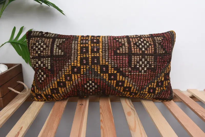 Red & Yellow Southwestern Pillow, 12x24 Embroidered Throw Pillow