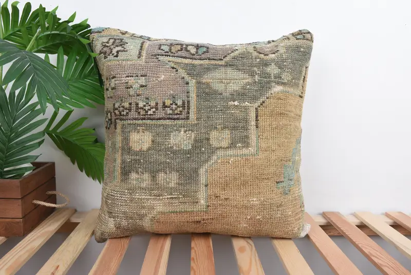 Bronze & Brown Southwestern Throw Pillow, Vintage Embroidered Cushion