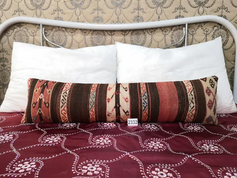 Handmade Wool Throw Pillow, Brown & Red Striped Rectangle Cushion