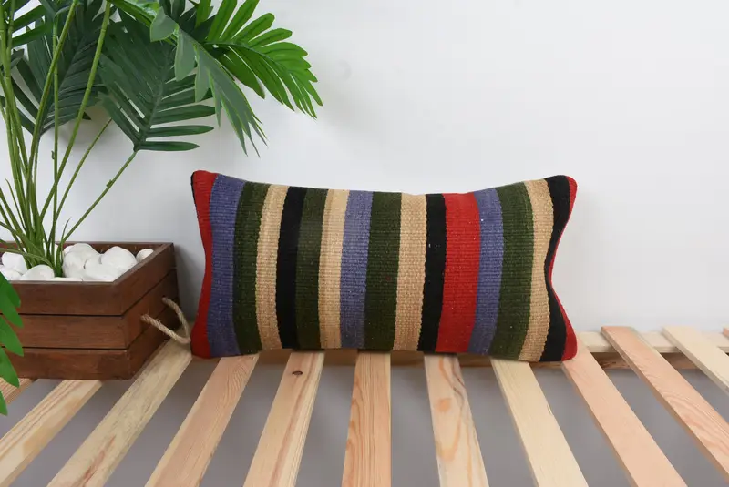 Red & Bronze Striped Throw Pillow, Embroidered Vintage Rectangle Pillow