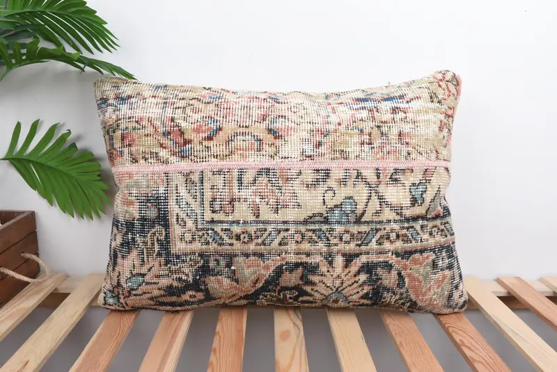 Beige & Bronze Patchwork Throw Pillow, Handmade Embroidered Cushion
