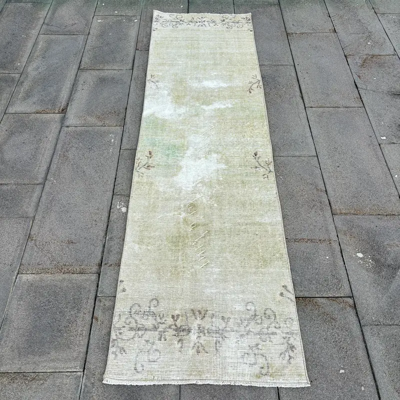 2,1x7,3 ft Green Rug with Brown Plants & Trees Pattern, Unique Decor