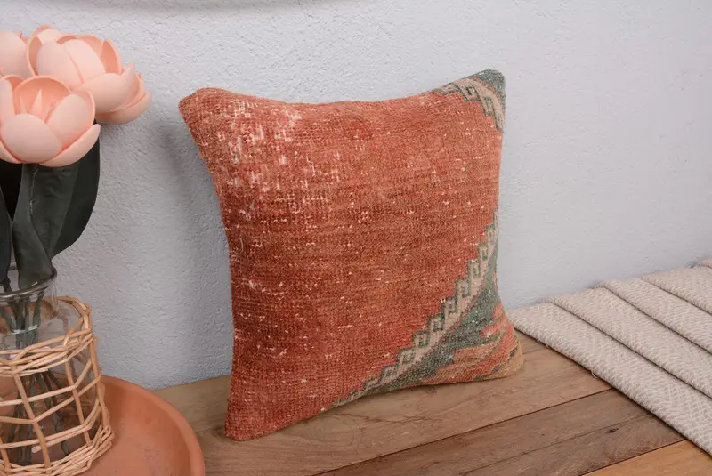 Red Southwestern Embroidered Throw Pillow, 12x12 Handmade Cushion