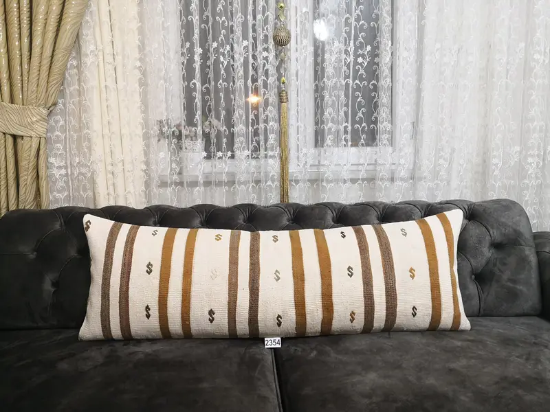 Embroidered Rectangle Throw Pillow, Handmade Striped Cotton Wool Pillow