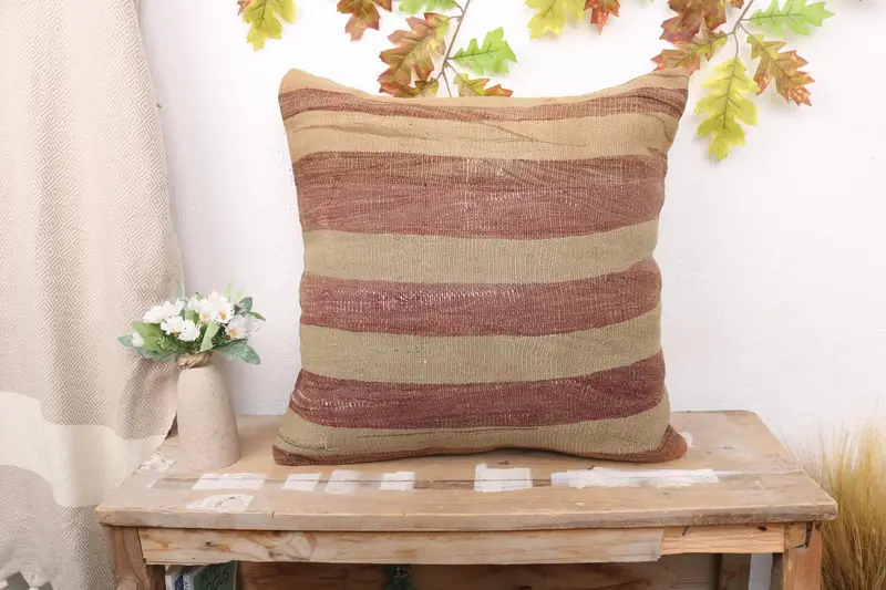 Brown & Red Striped Throw Pillow, Handmade Kilim Pillow