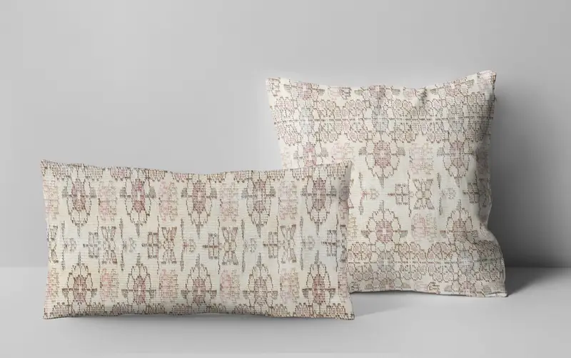 Embroidered Southwestern Pink Throw Pillow, Vintage Rectangle Cushion