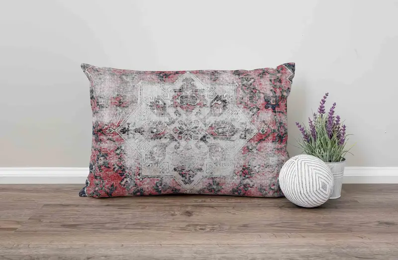 Handmade Southwestern Throw Pillow, Vintage Red Linen Cushion