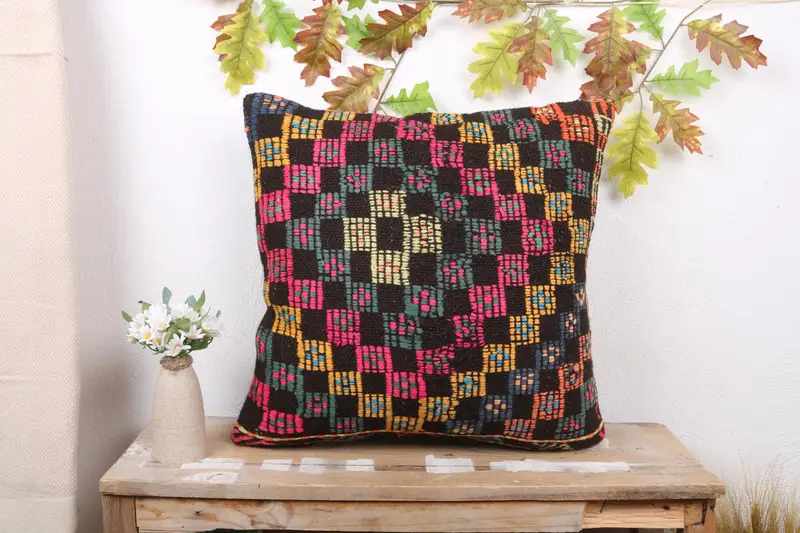 Handmade Southwestern Embroidered Throw Pillow, Vintage Pink & Yellow Pillow