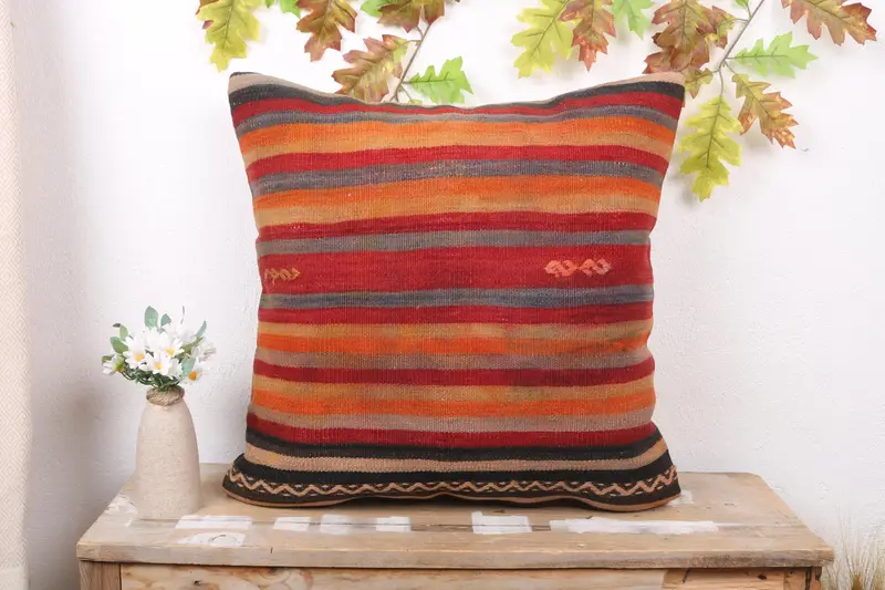 Orange & Red Striped Pillow, 22x22 Embroidered Throw Pillow