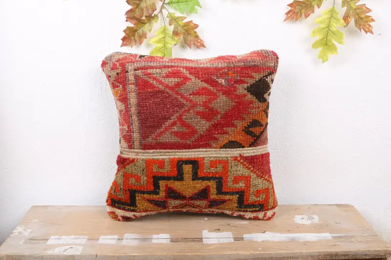 Orange & Brown Patchwork Throw Pillow, 16x16 Embroidered Cushion