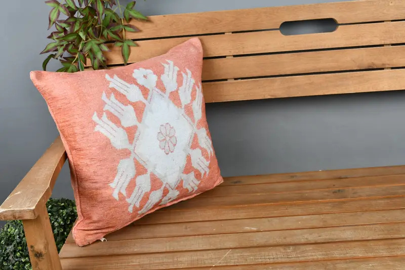 Handmade Southwestern Orange Rectangle Throw Pillow, Vintage Cushion