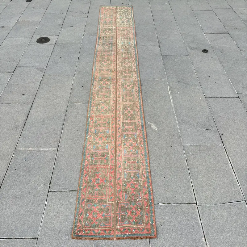 Elegant Green & Red Persian Rug, 1,5x11,2 ft Chic Decor