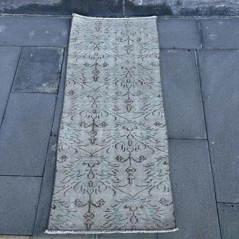 Elegant Beige Moroccan Rug, 2x4.7 ft with Green Accents