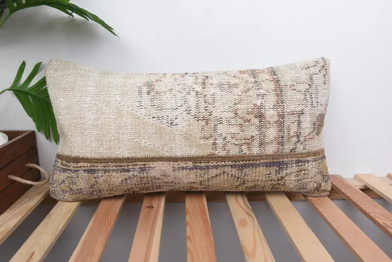 Beige & Bronze Patchwork Throw Pillow, Handmade Embroidered Cushion