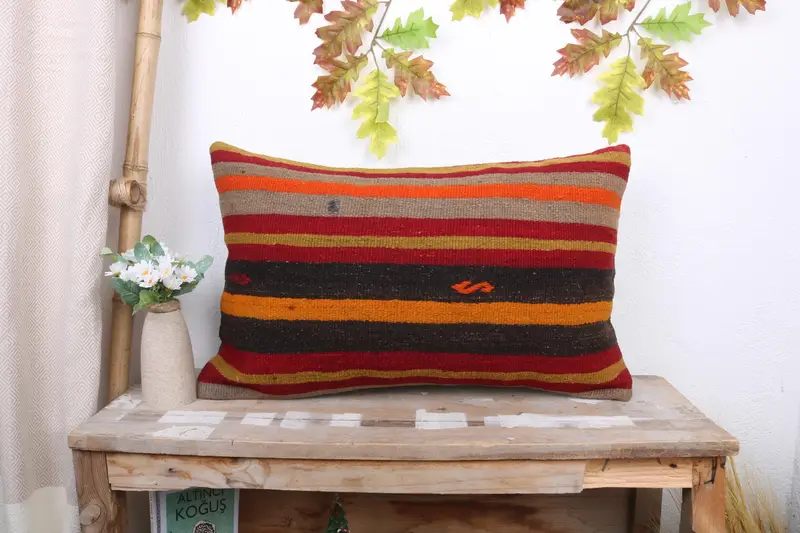 Orange & Brown Striped Throw Pillow, 16x24 Embroidered Pillow