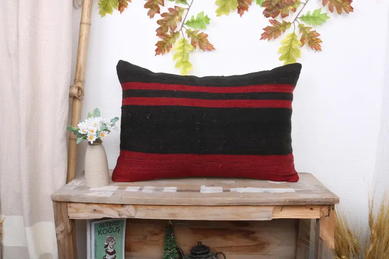 Embroidered Brown & Red Striped Pillow, Versatile 16x24 Throw Pillow