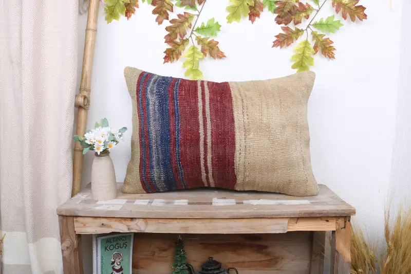 Red & Bronze Striped Throw Pillow, 16x24 Embroidered Cushion