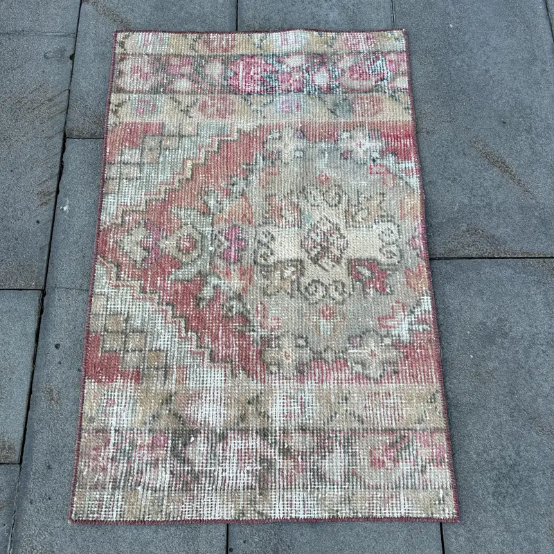 1,8x2,8 ft Red Oriental Rug, Elegant Beige Accents