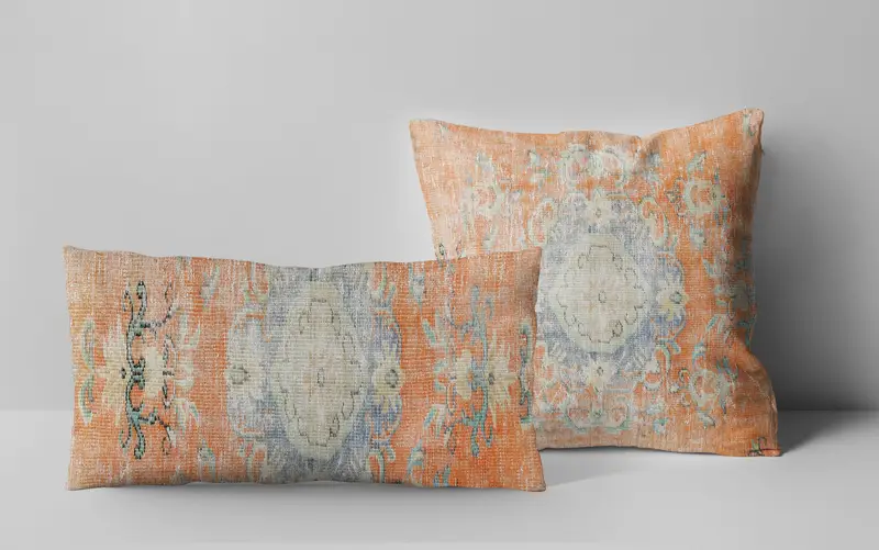 Orange Southwestern Kilim Pillow Cover, Handmade Rectangle Throw Pillow