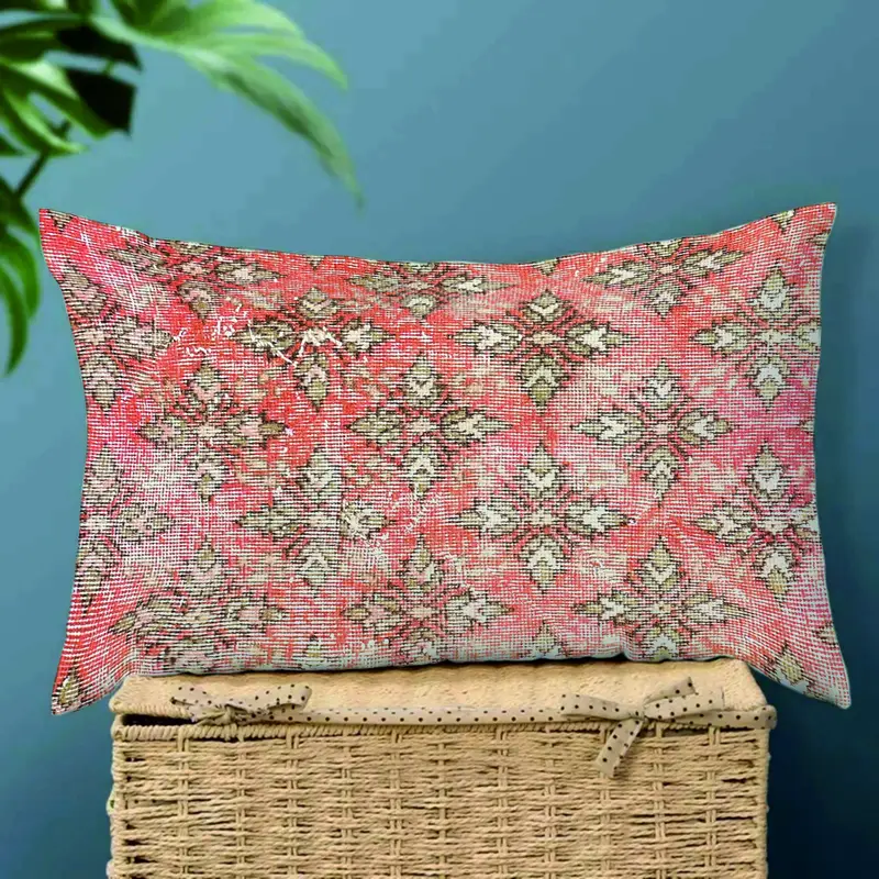 Red Southwestern Embroidered Throw Pillow, Handmade Vintage Cushion