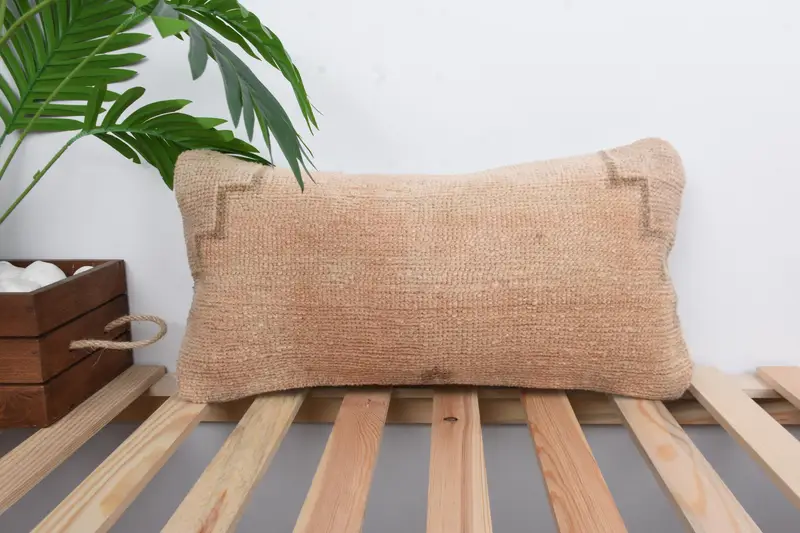 Beige Southwestern Embroidered Pillow, 10x20 Handmade Throw Pillow