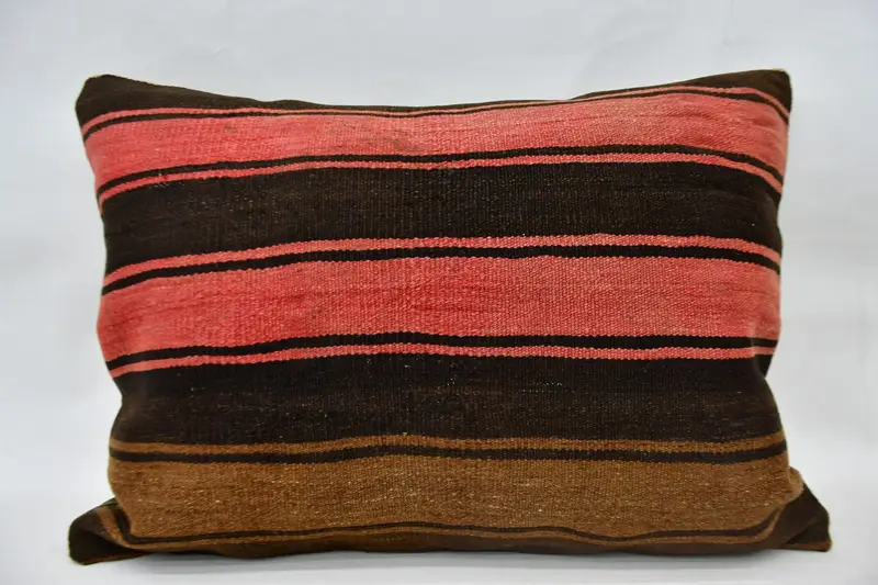 Red & Brown Striped Throw Pillow, 20x28 Handmade Rectangle Pillow