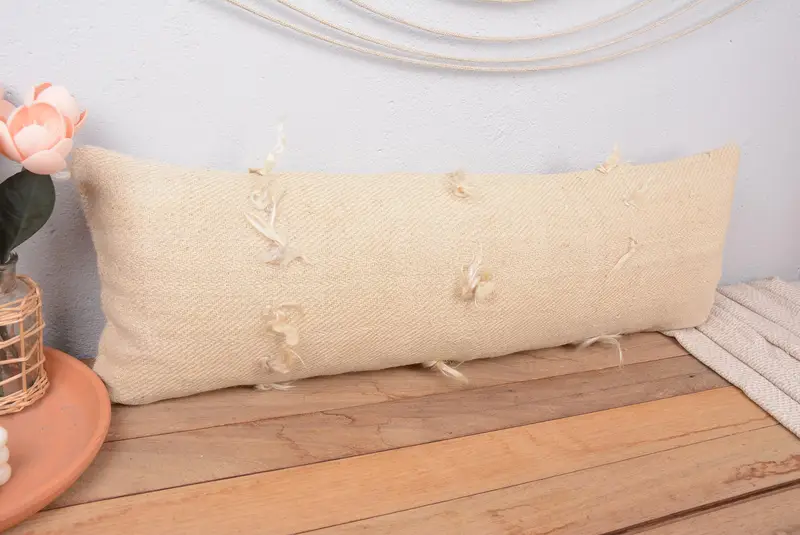 Embroidered Southwestern Beige Throw Pillow, 12x36 Handmade Linen Pillow