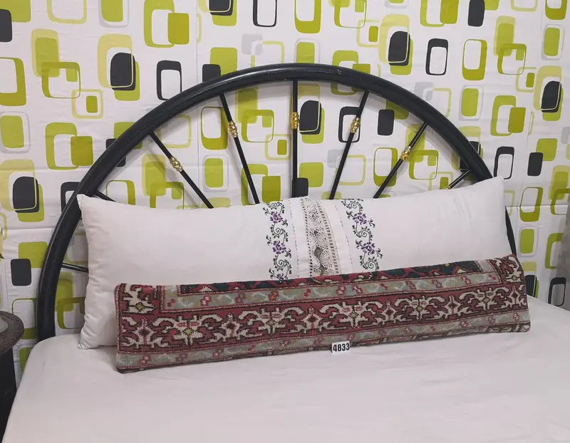 Handcrafted Wool Throw Pillow with Geometric Pattern, Vintage Rectangle Pillow