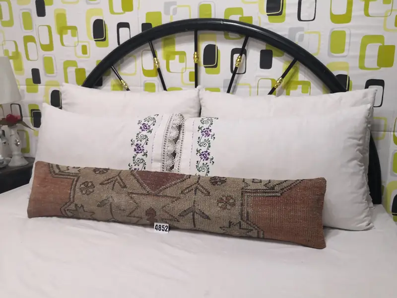 Handmade Embroidered Wool Throw Pillow, Geometric Vintage Decor
