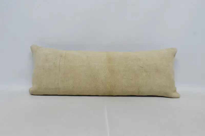Handmade Beige Hemp Throw Pillow, 16x42 Vintage Plaid Pillow