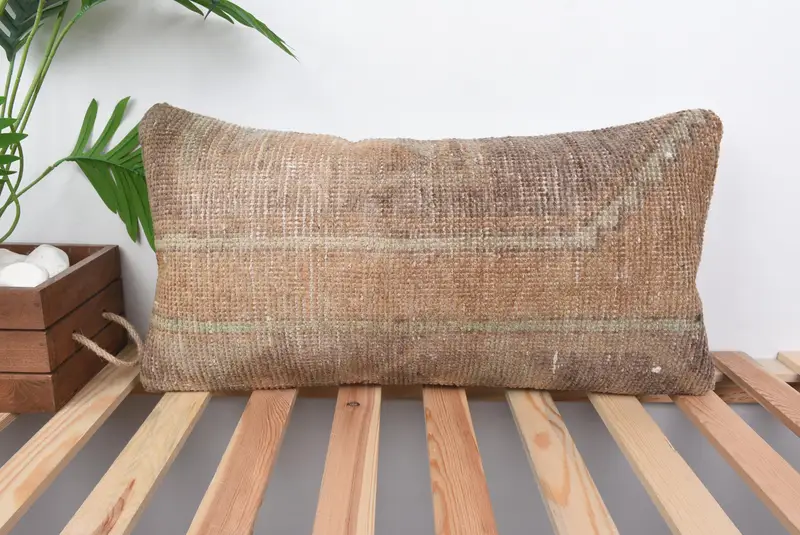 Handmade Brown Southwestern Throw Pillow, 12x24 Embroidered Linen Pillow