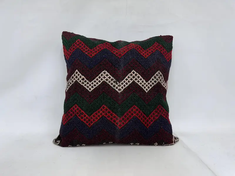 Red & Green Embroidered Throw Pillow, 32x32 Handmade Cushion