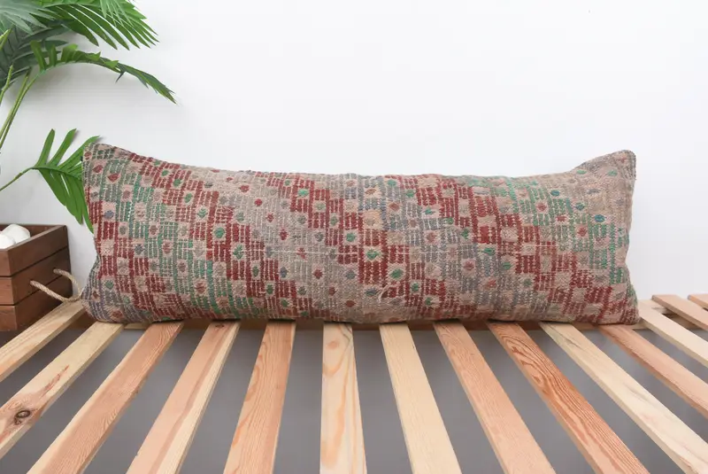 Red Southwestern Embroidered Throw Pillow, Handmade Vintage Cushion